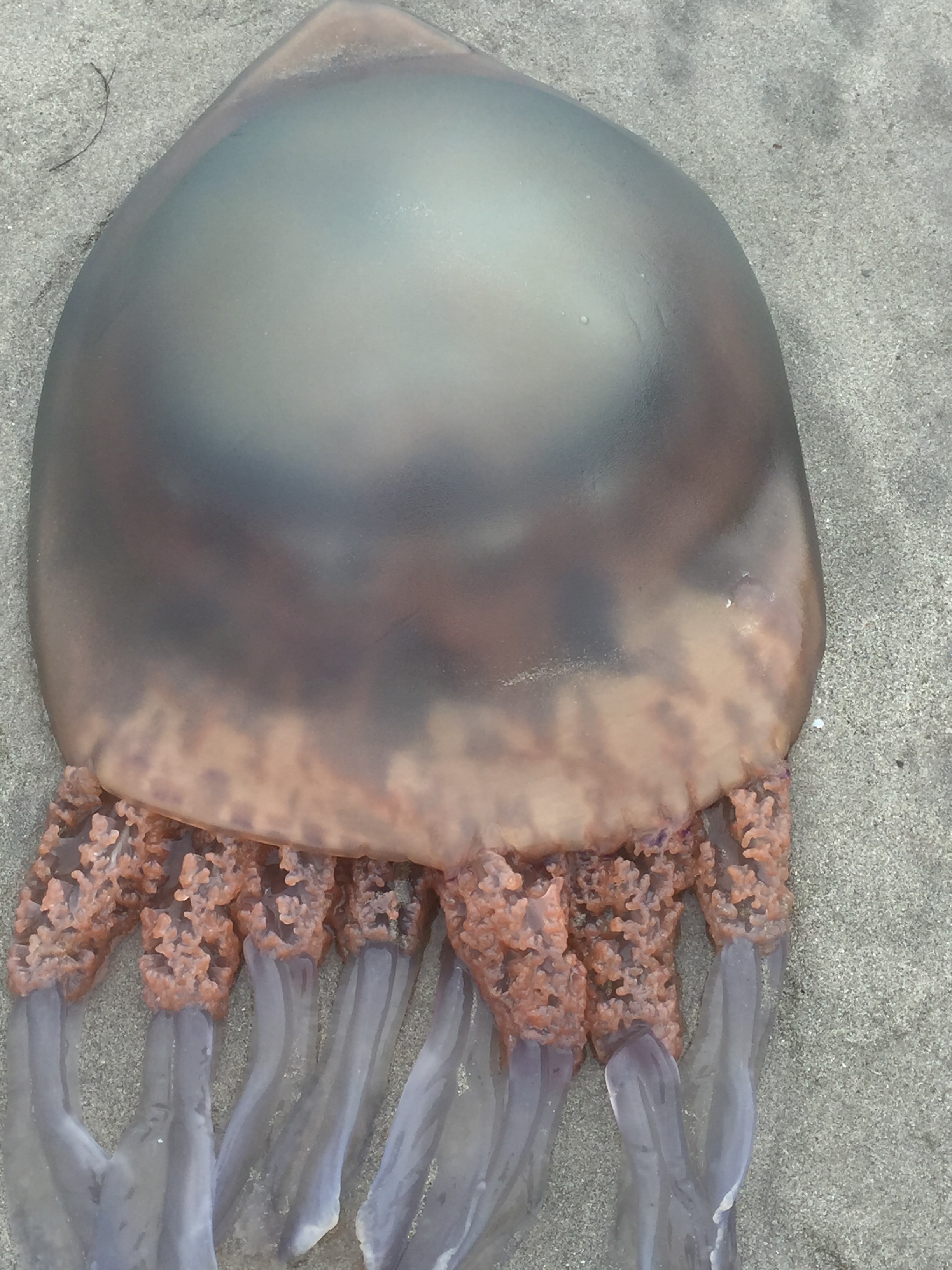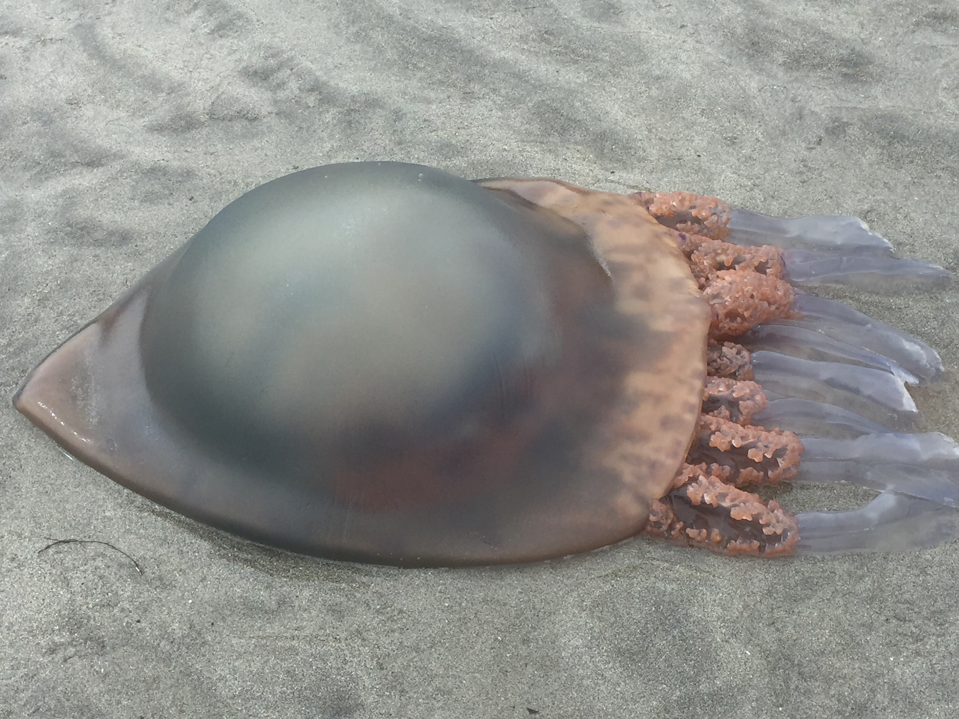 Thank you to Sheila Pryor for these photos of an enormous Barrel Jellyfish washed up on the beach: