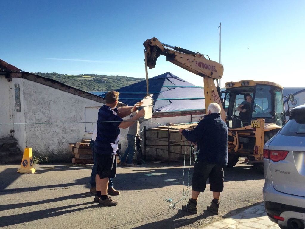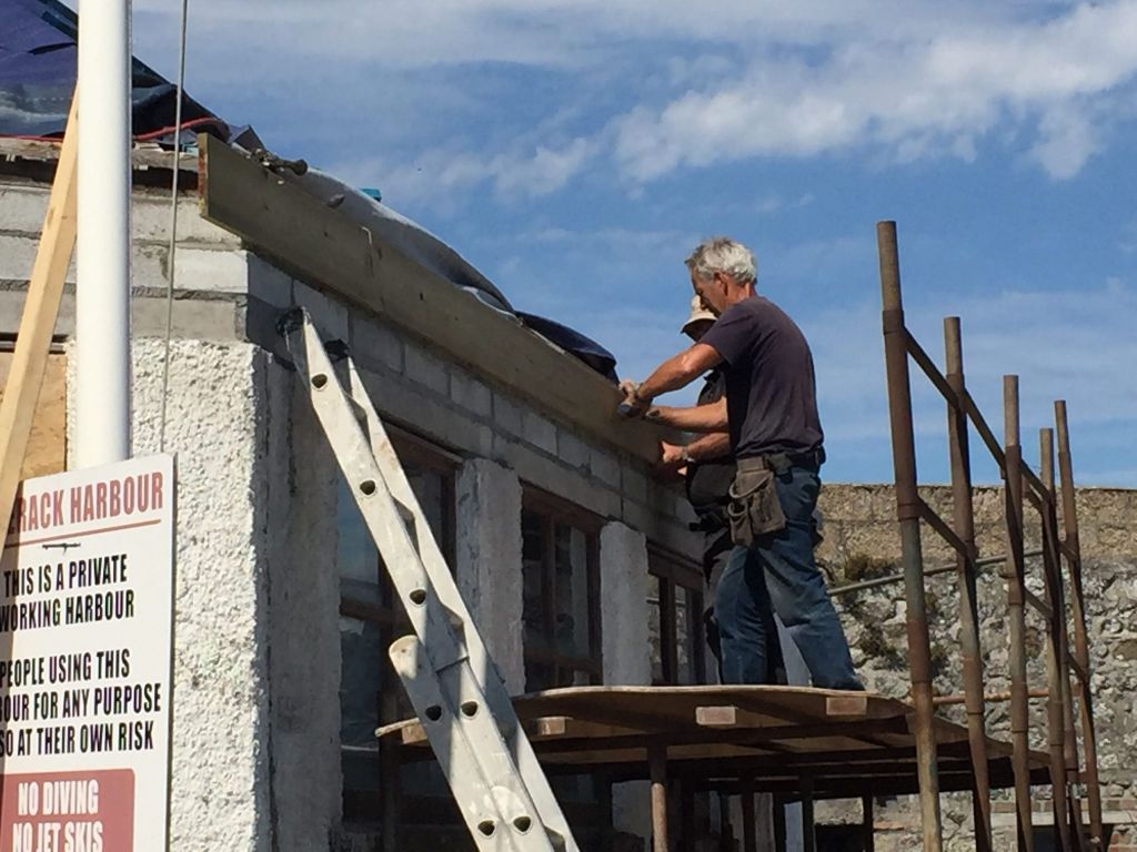 Many of you will know that the Fishermen’s Rest, on the harbour, was in a dilapidated state: Liz Hanley and Sheila Pryor made it a priority of theirs to see this community facility restored before it suffered irreparable damage. The report below and photos show just what excellent progress has been made so far.