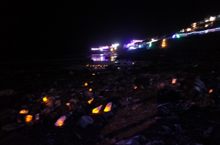 It’s this year’s first Night of Twinkling Lights on Coverack Beach on Thursday 19th August! Lights and candle bags will be available outside the Old Mill Shop from 8.30pm for £4, or can be bought from this page (see below) for £5 if you can’t make it on the night. Feel free to bring your own pens for decorating the bag, or ask one of our volunteers to write a message, before enjoying watching the lights on the beach below. From 10.30pm we will clear up the lights for recycling. All proceeds will go to Coverack Space 2000 to support Coverack School and more fantastic village events. Please wear appropriate footwear and bring a torch.